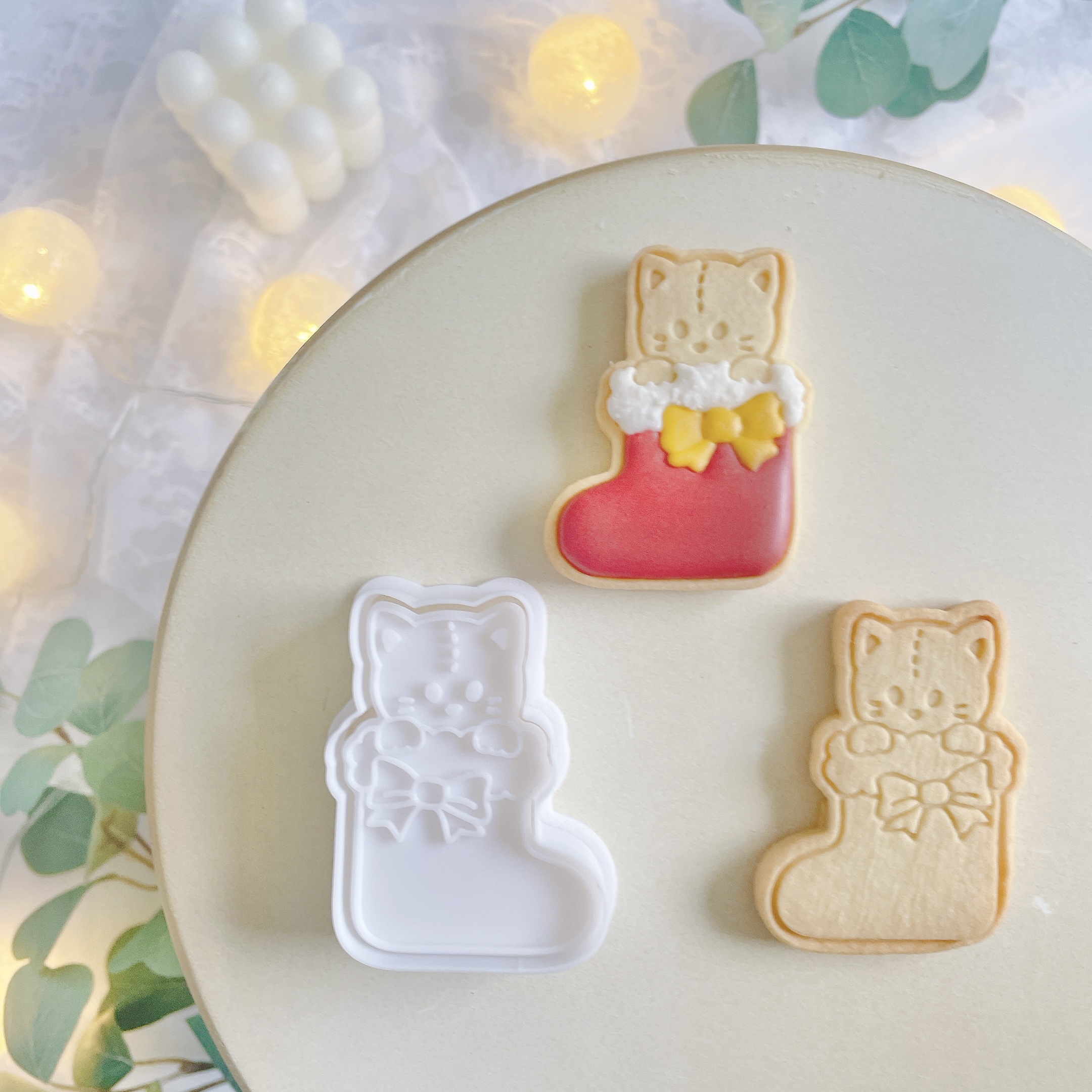 クリスマスのブーツからひょっこり顔を出すゾーイのクッキー型です。